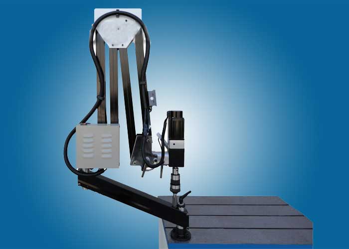 1微電腦控制,扭矩大小可調,盲孔不斷絲錐可根據攻絲的大小自行調節扭矩,加上扭力夾頭過載保護,雙重保護,不斷絲錐;主軸在半徑1200/2000MM內任意移動。