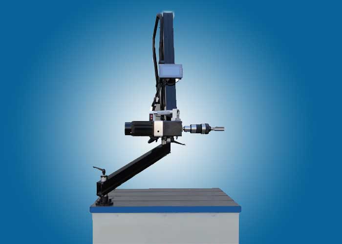 1微電腦控制,扭矩大小可調,盲孔不斷絲錐可根據攻絲的大小自行調節扭矩,加上扭力夾頭過載保護,雙重保護,不斷絲錐;主軸在半徑1200/2000MM內任意移動。